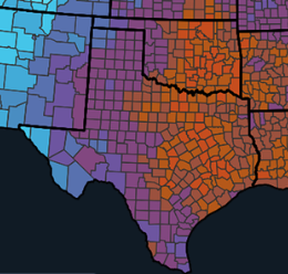 Although individual stations are often favored as they provide local data, it might not be the best choice to use a single station’s data for long-term risk analysis if it is of poor quality (i.e., has data gaps or has not been calibrated) or has a short period of record. For example, some stations have long-term temperature records that begin in the eighteenth century. Other stations, such as those operated by the Texas Mesonet, for example, have only existed since 2016. Also, the system doesn’t cover the entire state but has a relatively high spatial density where it does exist. Depending on user needs, it may be more appropriate to look at data from a station that is relatively close to the desired location (i.e., not in the exact city or county) if it has a longer period of record. In other words, if a user is looking to assess a location’s long-term risk, a nearby station with 60 or 100 years’ worth of data may be more valuable than a local station that only contains 15 years of data or has long periods of missing data. Furthermore, if a nearby station does not have a long-term record, it may be more valuable to focus on the tools with interpolated analyses or averages. These tools are acknowledged by atmospheric science professionals, including climatologists, to represent accurate and relevant data when locations are under- represented.